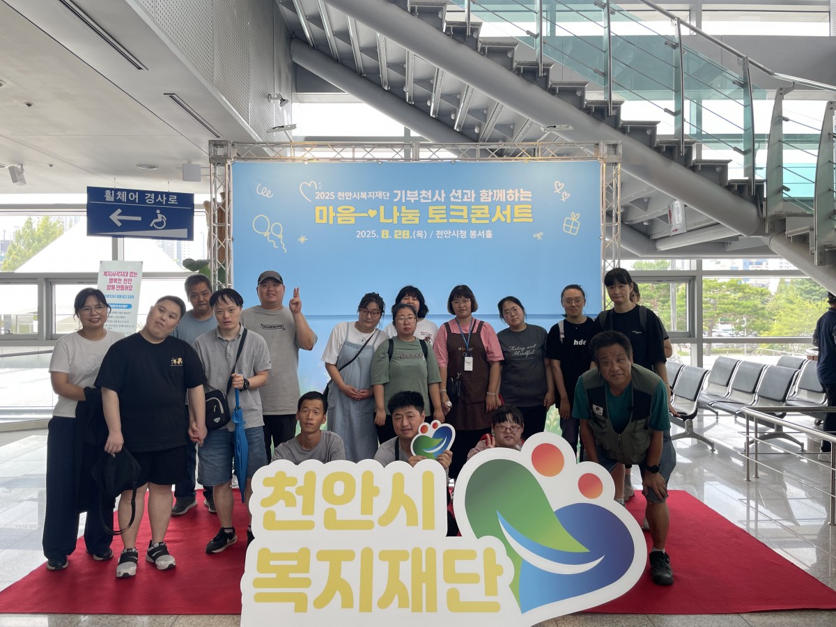 천안시복지재단 개관 10주년을 맞이하여 지난 8월 28일 천안시청 봉서홀에서 열린 '기부천사 션과 함께하는 마음나눔 토크콘서트'를 참석하였습니다.