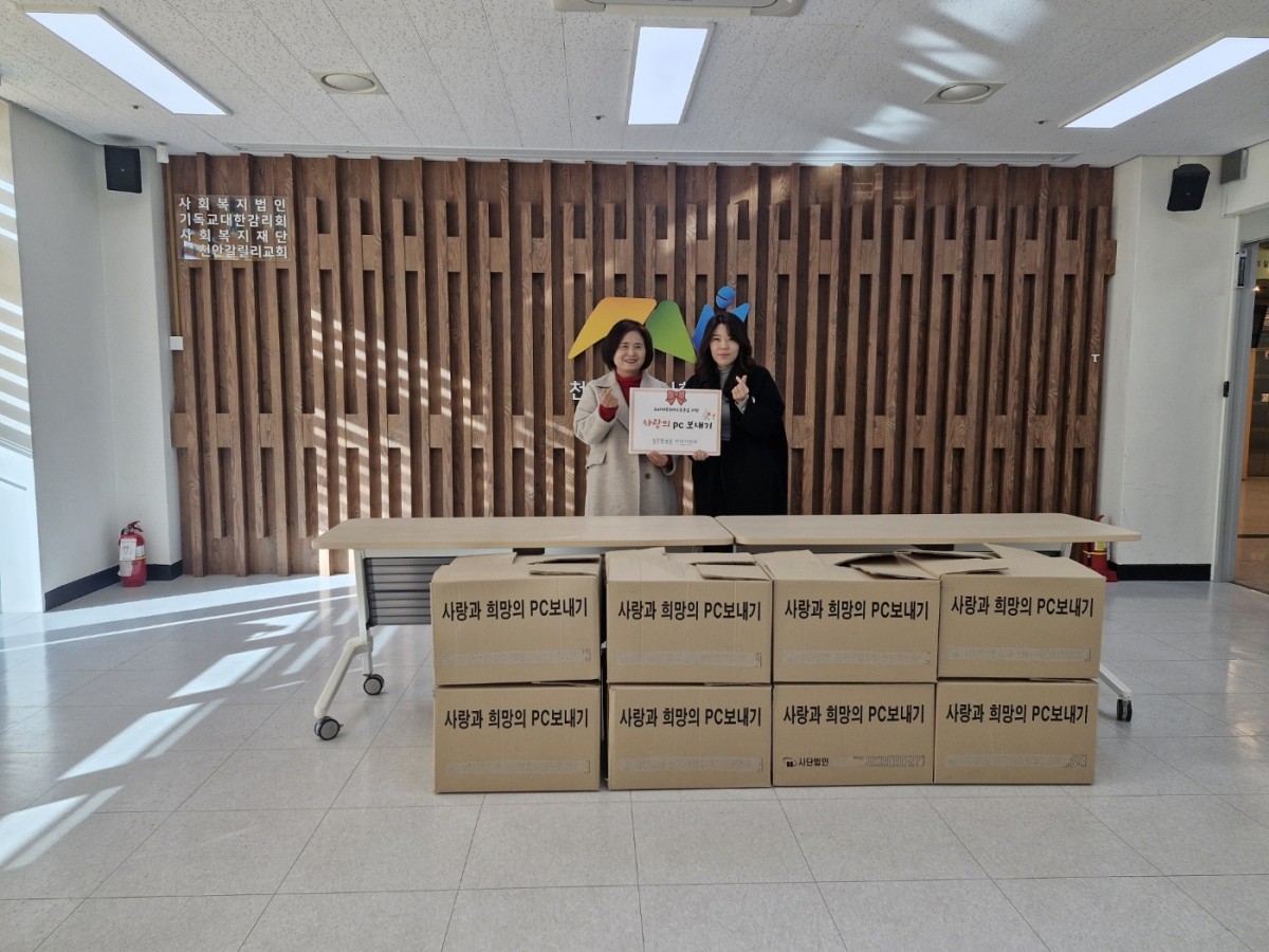 천안시종합사회복지관에 "사랑의 PC" 8대 나눔 작성일 25-12-29 08:51 본문 천안시꽃밭 유은지원장이 천안시종합사회복지관 문명희관장에게 컴퓨터 8대를 전달하고 기념촬영하고 있다. #천안시꽃밭,# 관련링크 https://www.localtoday.co.kr/news/articleView.html?idxno=405151 102회 연결 이전글풍세등대농원에서 천안시꽃밭에 쌀 20포 전달 25.12.29 다음글감귤 후원(조한균 근로자 부모님) 25.12.11 목록