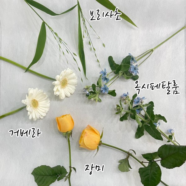 거베라와 장미, 옥시페탈룸, 보리사초입니다.