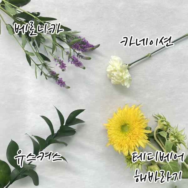 테디베어 해바라기와 카네이션, 베로니카, 유스커스입니다.