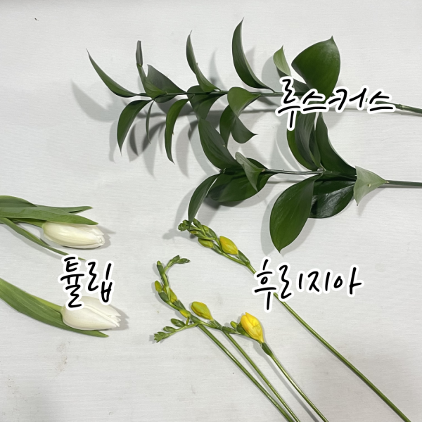 튤립, 후리지아, 루스커스